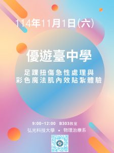 優遊臺中學課程「足踝扭傷急性處理與彩色魔法肌內效貼紮體驗」錄取名單、活動日程-請參閱附件